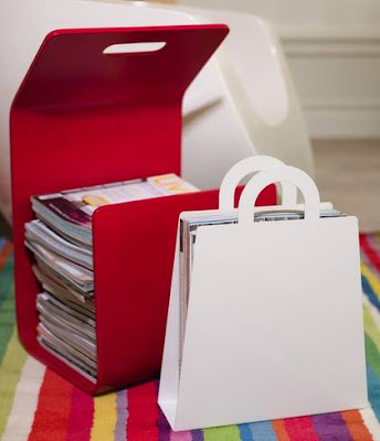 Detta röda tidningsställ i böjträ skulle matcha snyggt, 1 250 kronor, Nordiska Galleriet. Det vita Magbag från Maze, 695 kronor känner ni igen från Designtorget. Kul att matcha två olika… känns mer avslappnat liksom…
