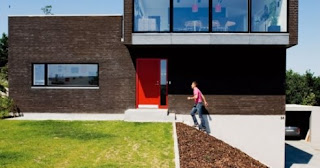 Bakom den röda dörren kallar Bo Bedre detta reportaget för. För alla oss som gillar modern arkitektur är detta rena rama drömmen! Jag blir lycklig då jag ser hur de lyckat knyta ihop exteriören med interiören.