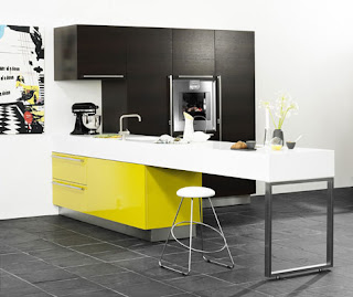 Jag gillar det första köket riktigt mycket, vilken härlig färg på luckorna!