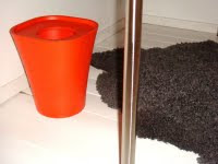 Tips: Prova dig fram att använda produkter som inte alltid är lämpade för just sitt ändamål, som denna papperskorg. Jag var inte sugen på en pedalhink, utan ville ha något annorlunda i snygg design. Prova tex också att hänga in tavlorpå toa. Grafiska texter, eller svar/vita bilder på barnen i snygga Ribba ramar från Ikea gör susen!! Lätta att byta ut om de skulle bli fula av fukt etc. Nedan ser ni bilder från yngsta familjemedlemens rum- hon var såklart först med Trash, haha! …här ser du även hur jag jobbat med fårskinn som matta, lyxigt och gosigt under fötterna på treåringen!!!