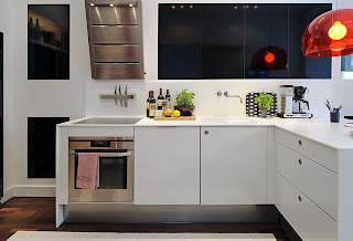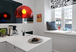 Stylish. Gardinen i köksfönstret vill jag ha!