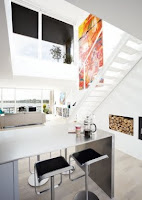 Jag gillar deras arkitektur och sättet dem mixar klassisker med moderna möbler, färgstark konst och personliga ting. På bilderna ser vi bland annat; en sliten Wegner stol, Arne Jacobsens sjuanstolar ochpå köksbordet står kubus ljusstaken.