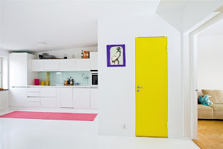 Gillar den gula dörren! Och att de har blandat gult, rosa och lila. Kul med lite färg till det vita! Helt i min smak.