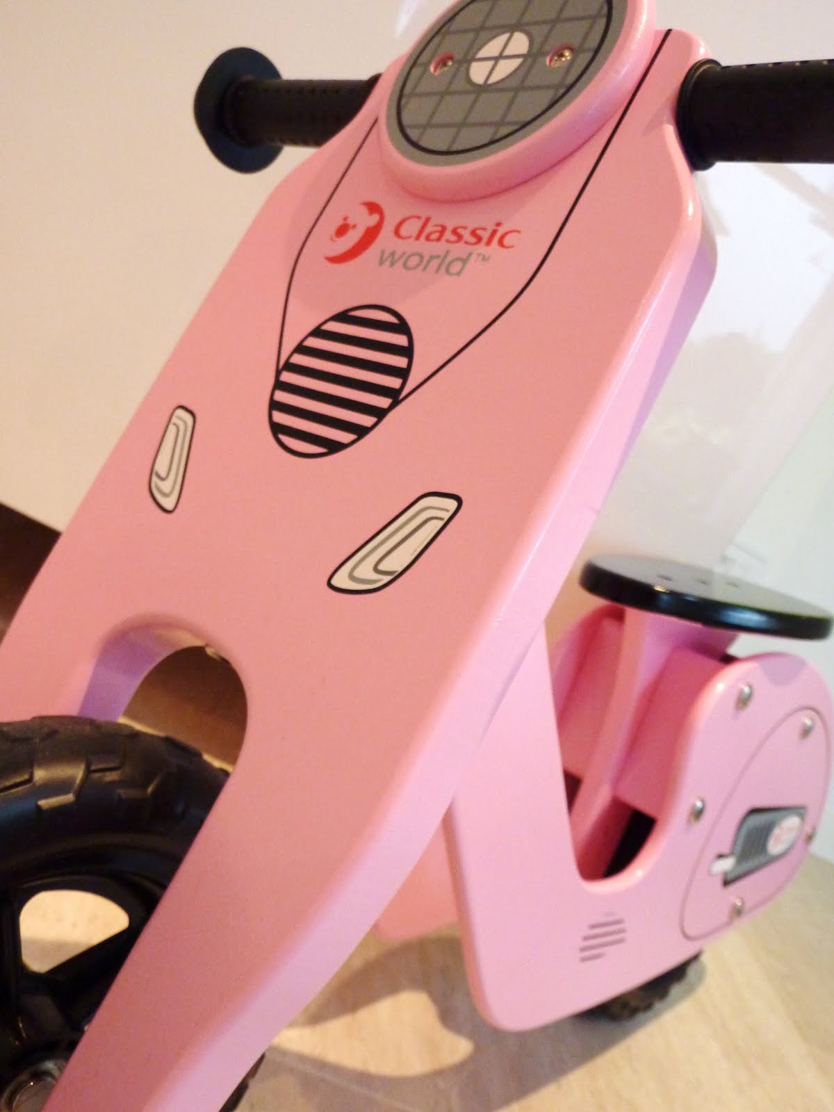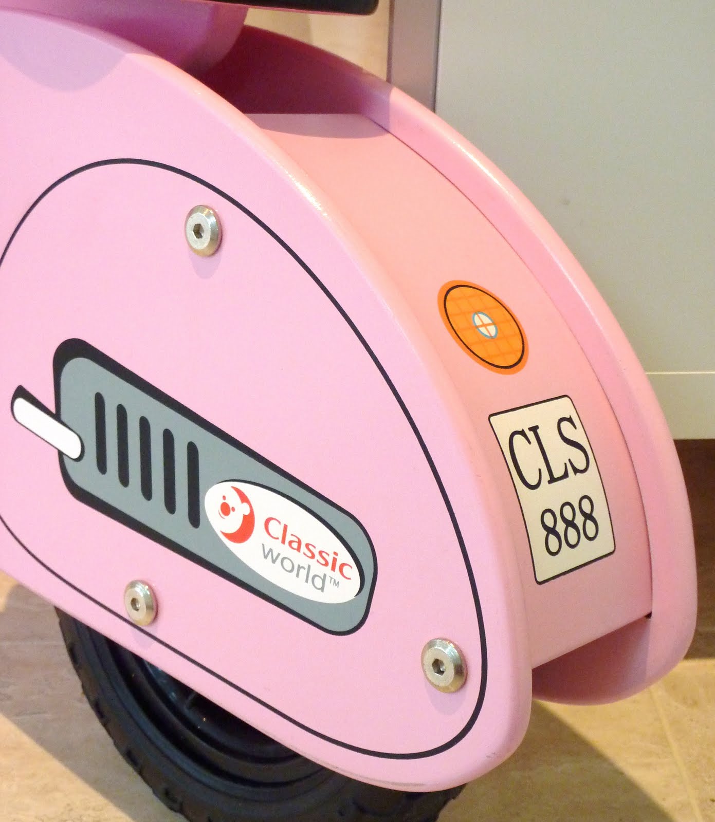 När hon samlat 10 fjärilar får hon välja en leksak eller åka till leklandet. Och igår blev det 10 …ILVA var önskemålet. Ja, det blev en rosa VESPA i trä. En fin och prisvärd leksak 499:- DKK tyckte mamma! Tidigare har hon valt ritblock och en annan gång ett paraply, så det varierar . Det ska tilläggas att man också kan bli av med fjärilar…! En rolig lek för en bestämd och pratglad fyra-åring. Frågan är nu;