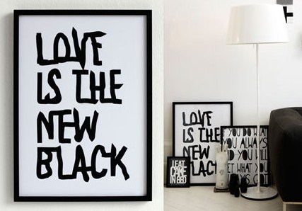 Först var det bokstäver för hela slanten, men nu är det grafiska citat som gäller… Svenska Therese Sennerholt fortsätter skapa texter och är mer populär än någonsin. Bilden från danska RUMs senaste nummer där Therese blir listad som designfavorit. Rum skriver. Og hvem kan ikke elske citatet ;”Love is the new black”?