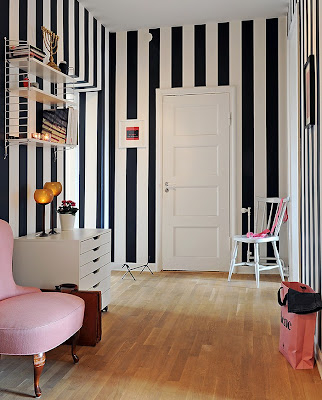 Älskar tapeten mest!! Sen gillar jag även hur de har tapetserat vägen in till det andra rummet. De har inte bara avslutat vid hörnen, skurit av och målat "passagen" vit!! Det ger ett välkomnande in i andra rummet plus att hallen känns större! 😀