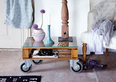 Varje gång jag ser ett, stannar jag upp och tänker; Ett sådant skulle jag vilja göra. Kan det bli enklare? Några plankor eller en lastpall + fyra hjul. Ett väldigt enkelt sätta att mjuka upp en stel miljö och få in lite industrikänsla.