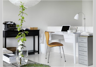 Vad roligt att du visar just den bilden, jag har inte sett den innan, men i mitt huvud så är det precis så jag har tänkt ha det i min kontorshörna.. letar febrilt efter ett sånt skrivbord på blocket för att sen kunna köpa en lådhurts att ha bredvid! 🙂