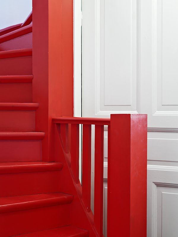 Otroligt snyggt. Kanske något för min trappa som jag spillt järnvitriol på. Har eksteg med valnötsbets idag, och de fläckarna håller på att göra mig galen. Så det kanske slutar med en röd trappa?
