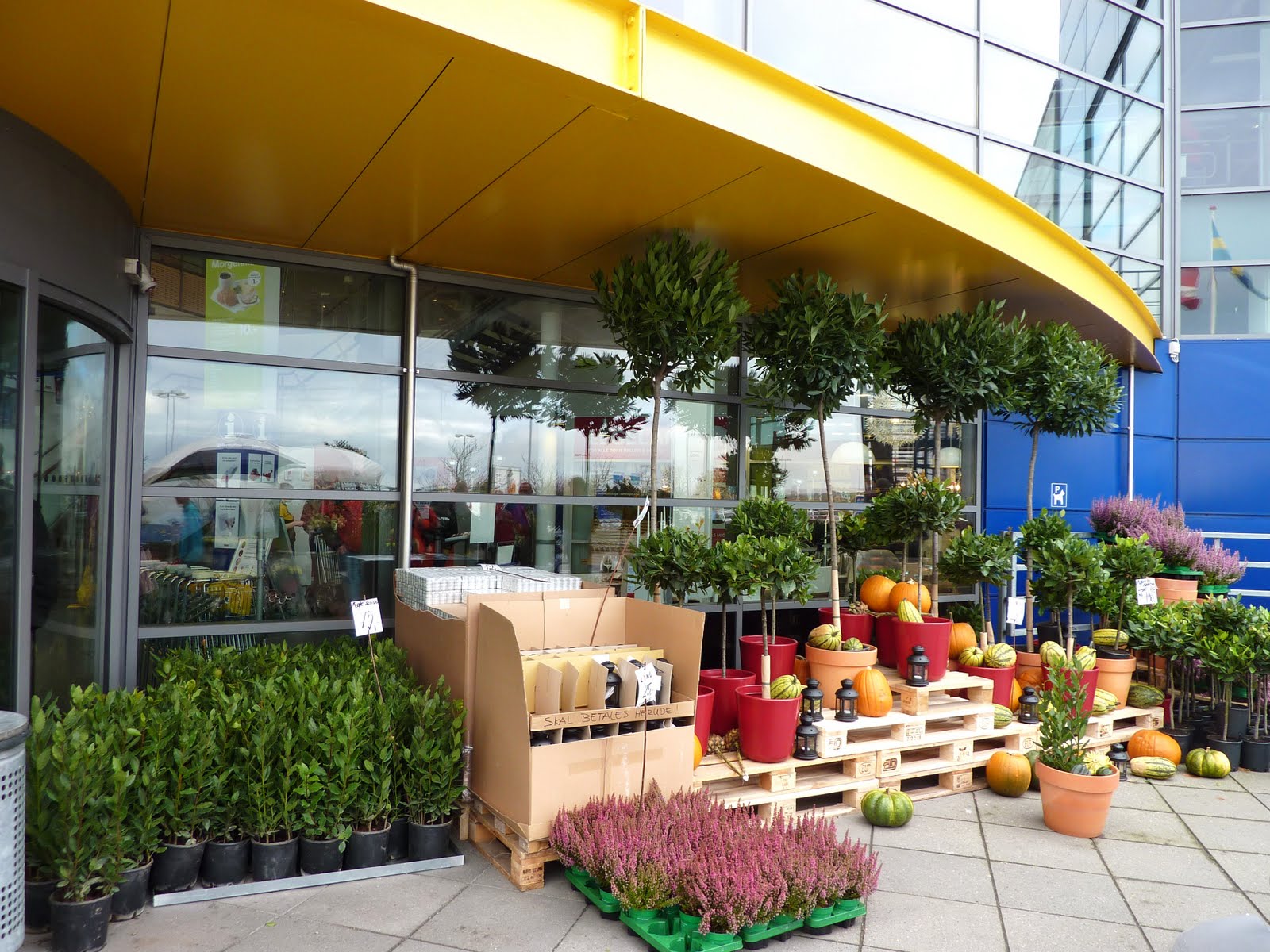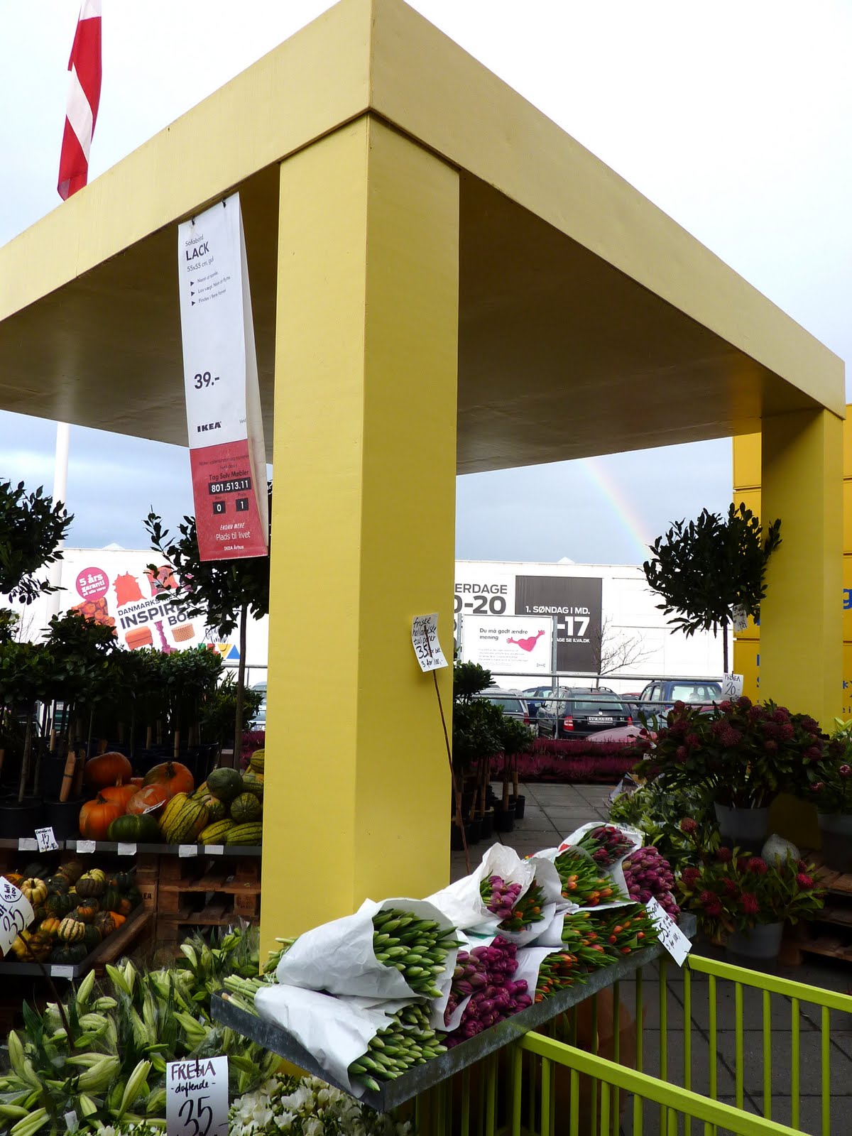 Oversize LACK bord frontas i dubbelbemärkelse och utanför varuhuset är det ofta blomstermarknad …som överallt annars i Danmark!!! Mysigt och just idag var temat Halloween. Såå, nu vet ni hur Ikea-Århus ser ut, ett litet men ganska mysigt ställe!