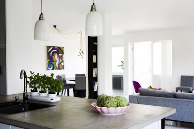 Ni får hålla tillgodo med en härlig inspirationsbild så länge. Själv drogs mitt öga till lamp-arrangemanget och tavlan vid matplatsen.