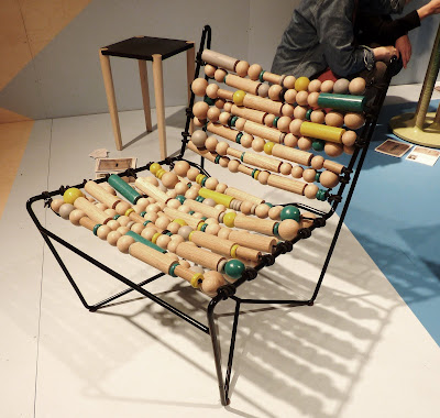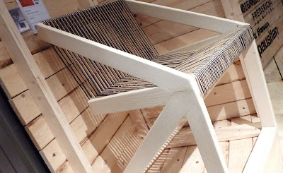 Idag vill jag meddela att lastpallstrenden nu har nått Stockholm Furniture Fair. Kolla in den läckra fåtölj som skapats av enbart pallar och en enkel orange dyna till det. Ett högt skåp av brädor och andra spillbitar gör rummet kaxigt och håller ihop det hela. Ja, i duktiga Jan Rundgrens monter eller snarare studio fick han uppdraget att inför mässan bygga upp ett hem i en personlig stil efter de stora trender 2011; Nordic Nature, Industrial vintage, Room of romance och Colour competition. De tre översta bilderna är tagna i ”Studio Rundgren” och de resterande är från Green House. Där ser man alltid vart vindarna blåser. Extra kul är det också när man om ett-två år ser att någon av de stora leverantörerna tagit en elevprototyp i produktion. Bland annat danska utställaren Sofie Brunner syntes i senaste numret av RUM. Den sista bilden är hennes bidrag.