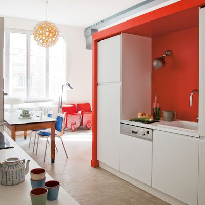 Ikväll får ni bilder på en smart inred compact-living-lya. Här har man tänkt till och utnyttjat varenda kvadratmeter. Att hålla en röd tråd i sin färgsättning, är speciellt viktigt när det är små ytor. Men tänk vad lite färg gör för denna lägenhet, stor skillnad om du frågar mig. Blev såklart också tokförtjust i stolarnas placering vid matbordet, stolarna på väggen och eames-stolen vid soffandelen. Och dörrarna till sov-och badrum har fått ”smarta” titthål, förmodligen för att få in lite dagsljus.