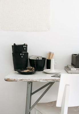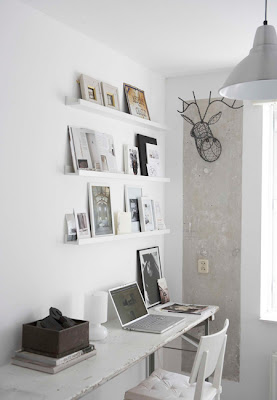 Speciellt efter att ha sett denna lilla arbetshörna. Enkelt och snyggt med tavlor, urklipp och personliga ting. Vad är din inställning till tavellisten? Ser att stylingen på det vackra patinerade bordet skiljer sig, hhmm!!! Jaja, fin inspiration tycker jag oavsett…